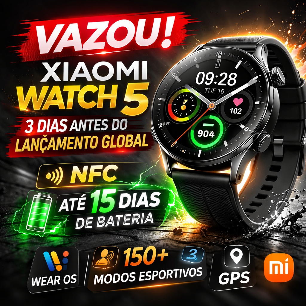 3 DIAS ANTES DO LANÇAMENTO GLOBAL! O Xiaomi Watch 5 chega como um dos smartwatches Android mais completos da categoria, trazendo NFC...